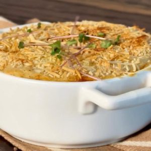 This is the gourmet combination of creamy mashed potatoes with a savory meatball filling and a touch of truffle. Offering